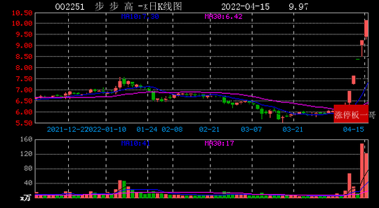 2022年04月15日,新零售受到利好消息的刺激下,整个板块掀起了涨停潮。共4家涨停,1家连板。